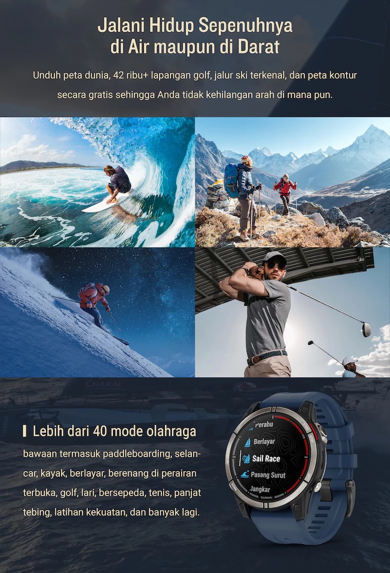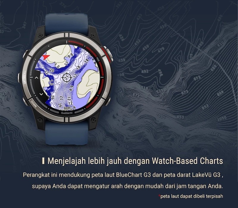 Eksplorasi Tanpa Batas Dimulai di Sini! Garmin quatix 7 Sapphire Edition dengan Multi-GNSS Peta Global dan Fitur Kelautan Canggih.