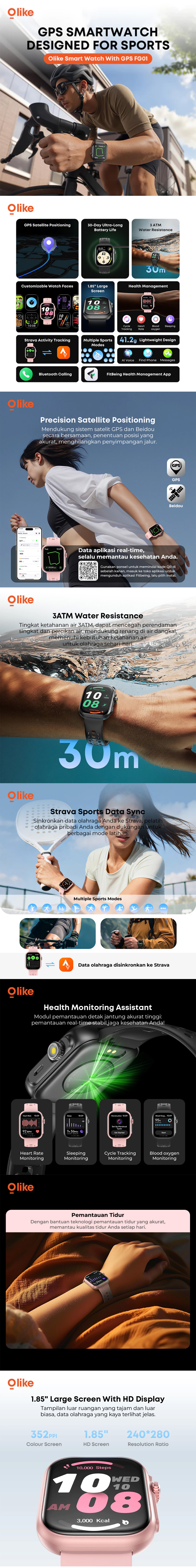 Ini alasan mengapa harus memilih Olike FG01 Smartwatch With GPS Pink Rubber Strap: