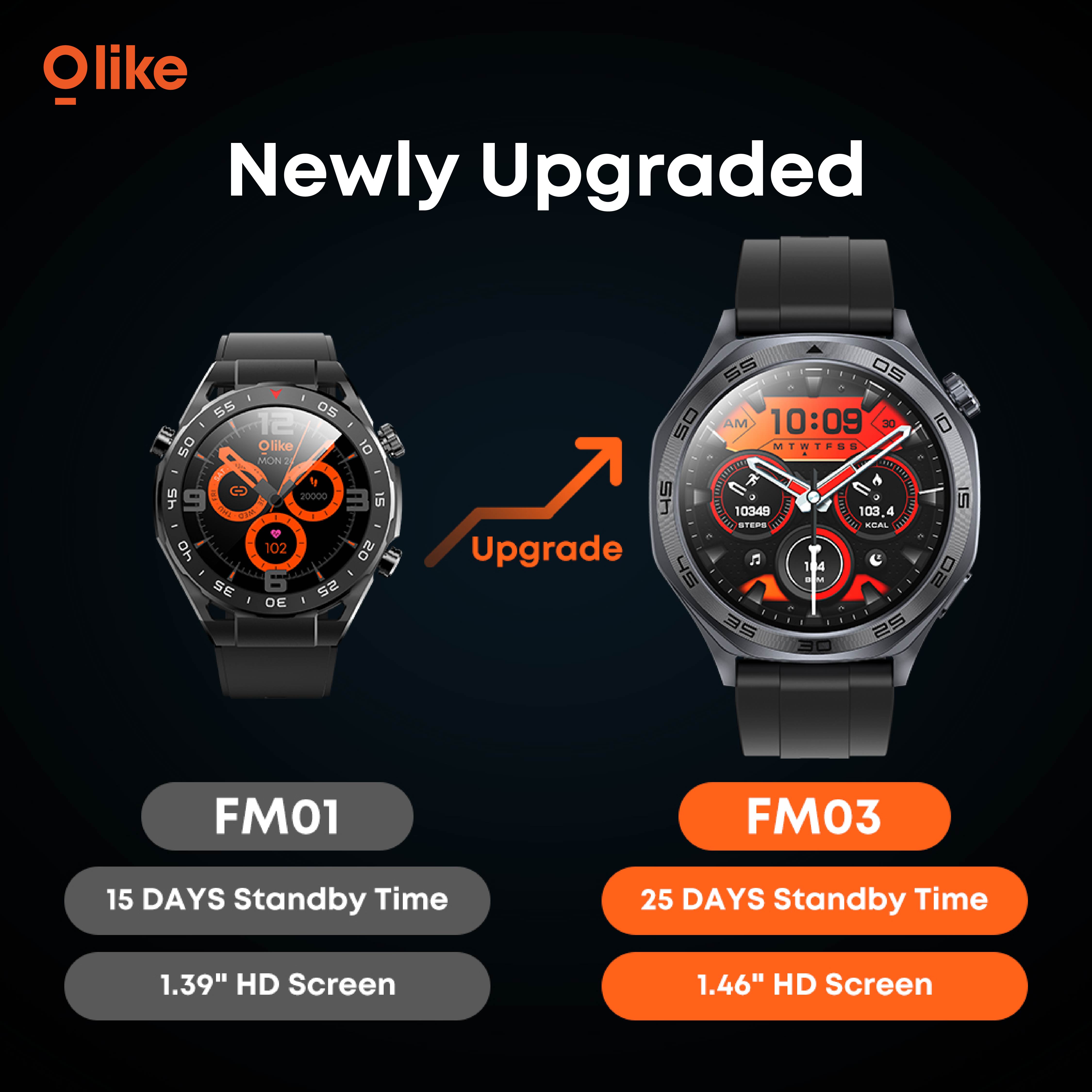 • 1x Olike FM03 Smartwatch Up to 25 Day Standby Digital Dial Black Rubber Strap