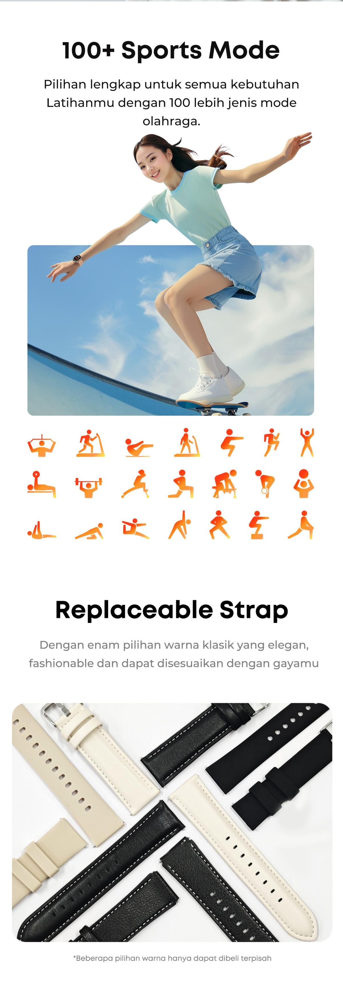 ✅ Dukung lebih dari 100 mode olahraga untuk menemani berbagai aktivitas fisik
