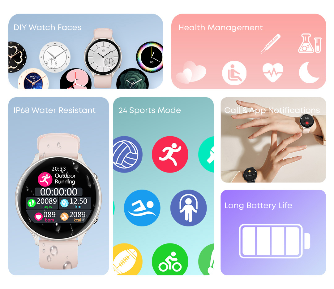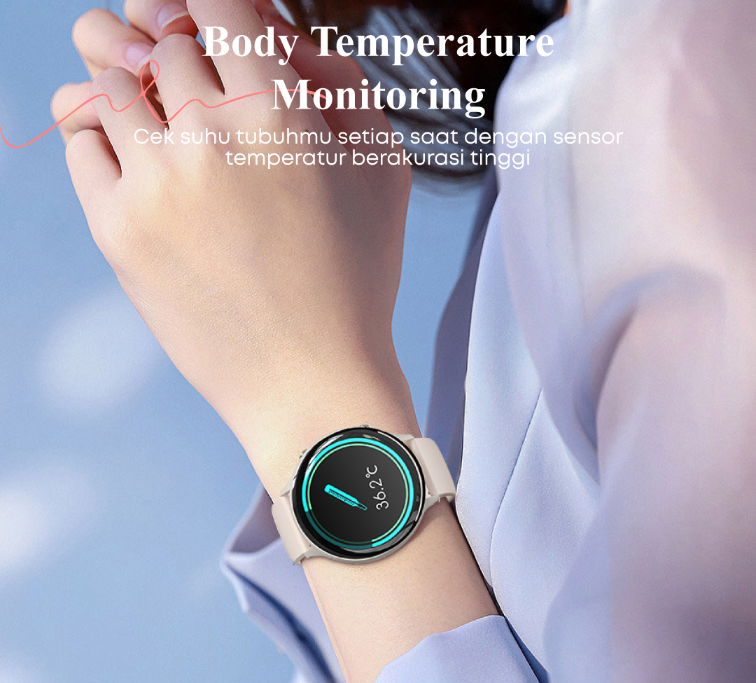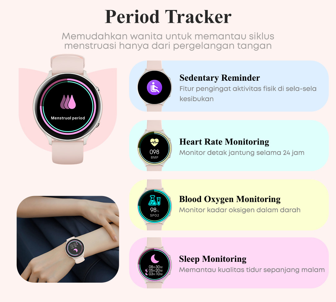 ✅ Fitur Kesehatan Lengkap – Ada pemantau detak jantung, oksigen darah, suhu tubuh, tidur, hingga pelacak siklus menstruasi.