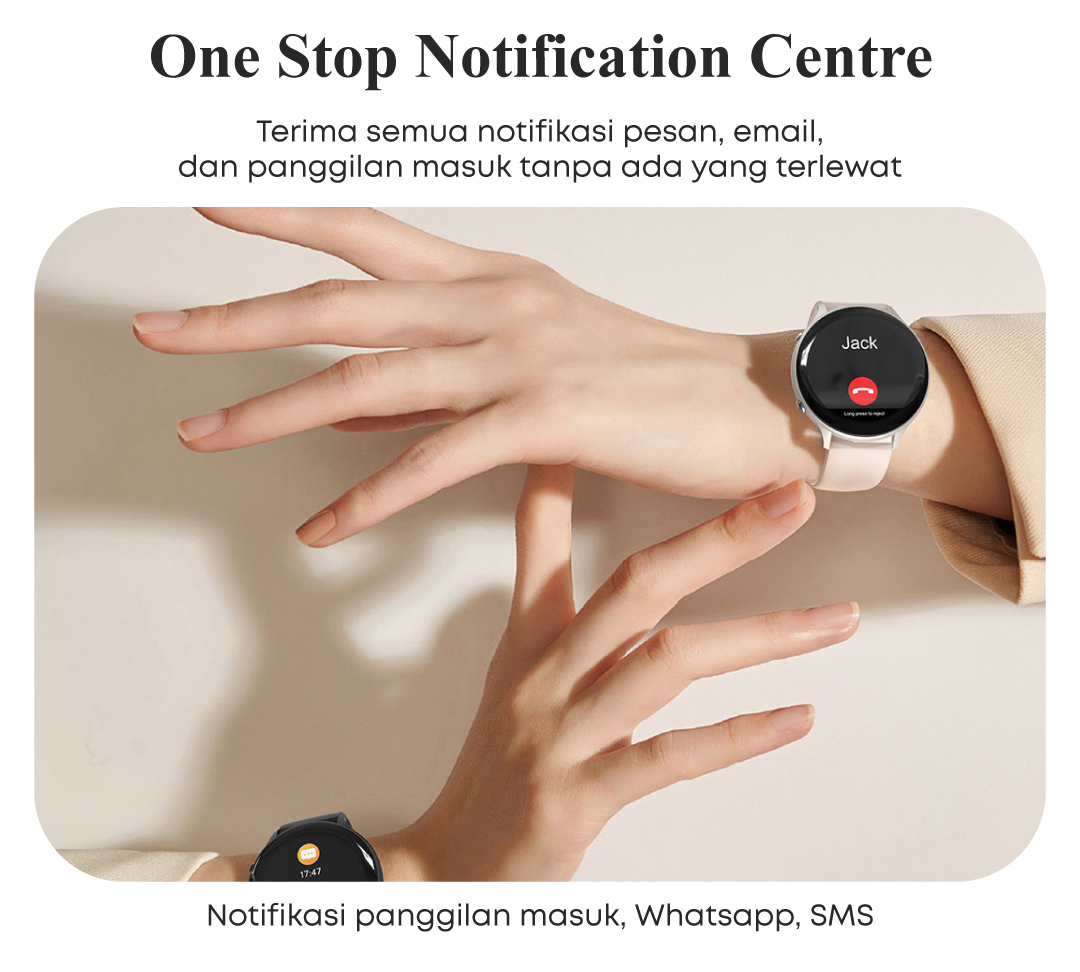 ✅ Notifikasi Lengkap – Bisa lihat pesan, WA, dan panggilan langsung dari pergelangan tangan.