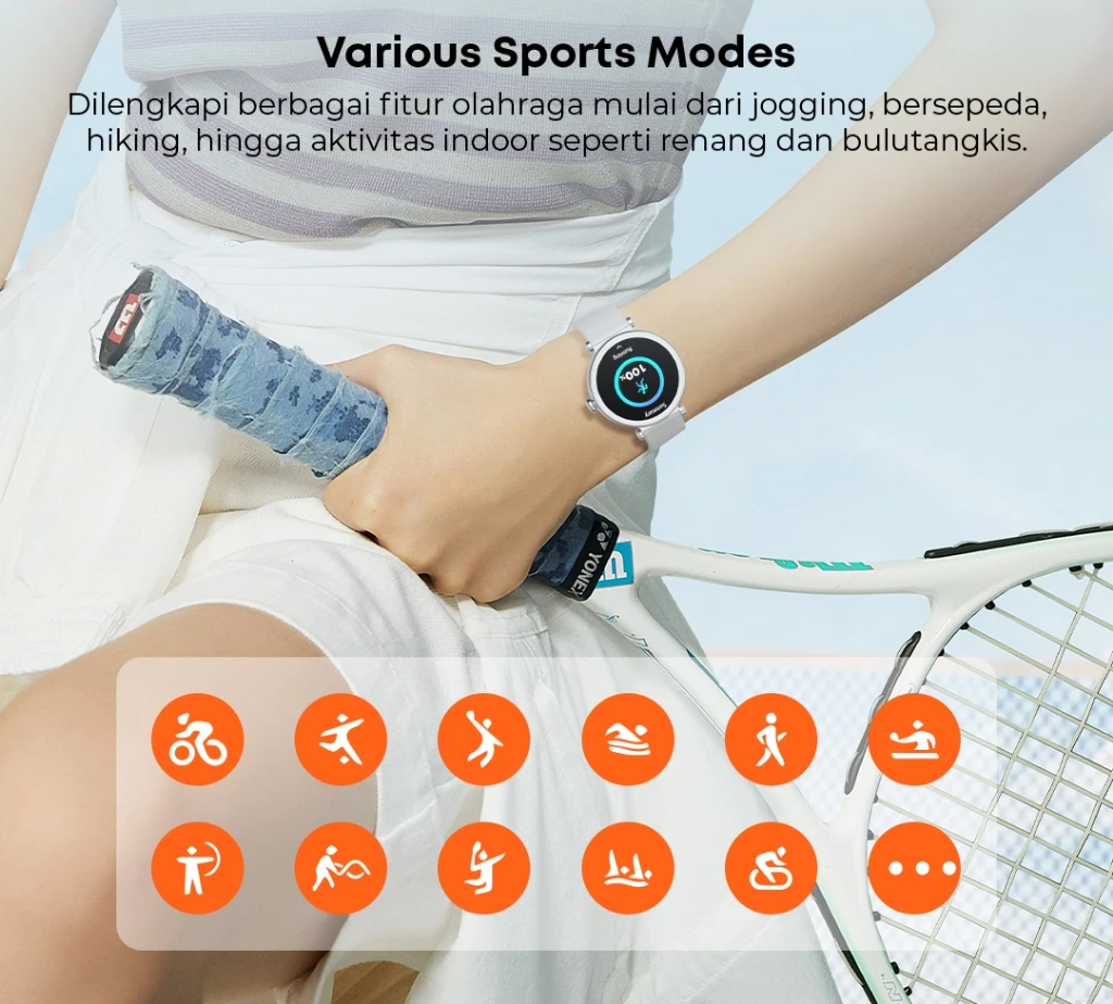 Smartwatch yang dilengkapi dengan layar HD 1,27", fitur kesehatan lengkap, dibekali lebih dari 100 mode olahraga, dan juga daya tahan baterai hingga 20 hari