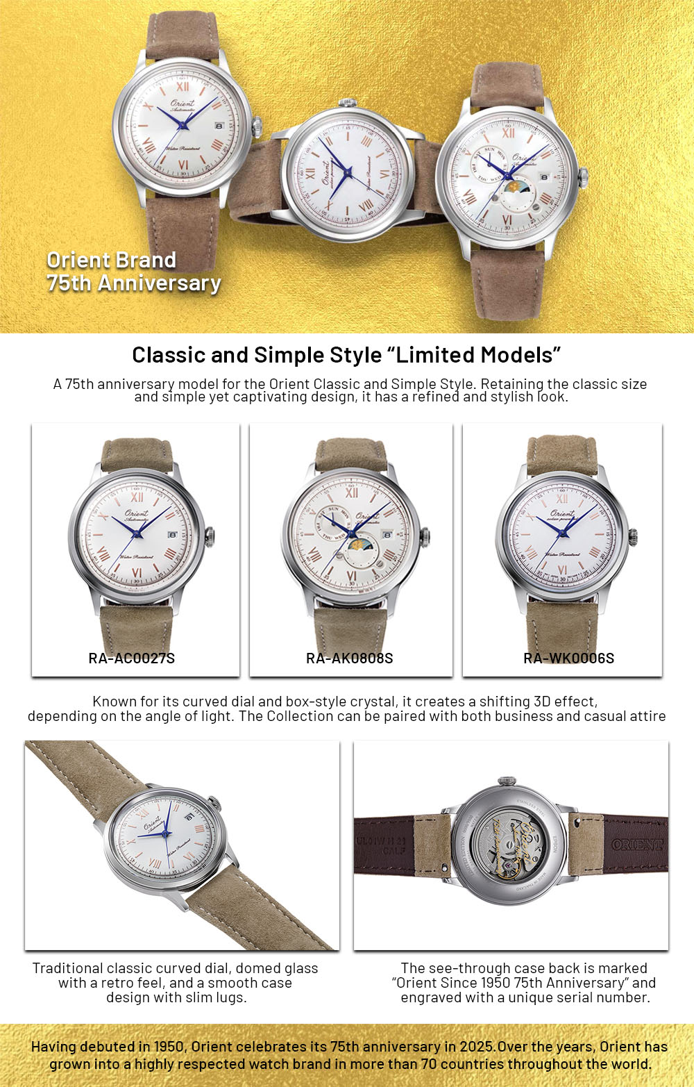 Perpaduan tradisi dan keanggunan modern, diciptakan pada Orient Classic RA-AC0027S Bambino untuk Anda yang menghargai detail dan fungsi: