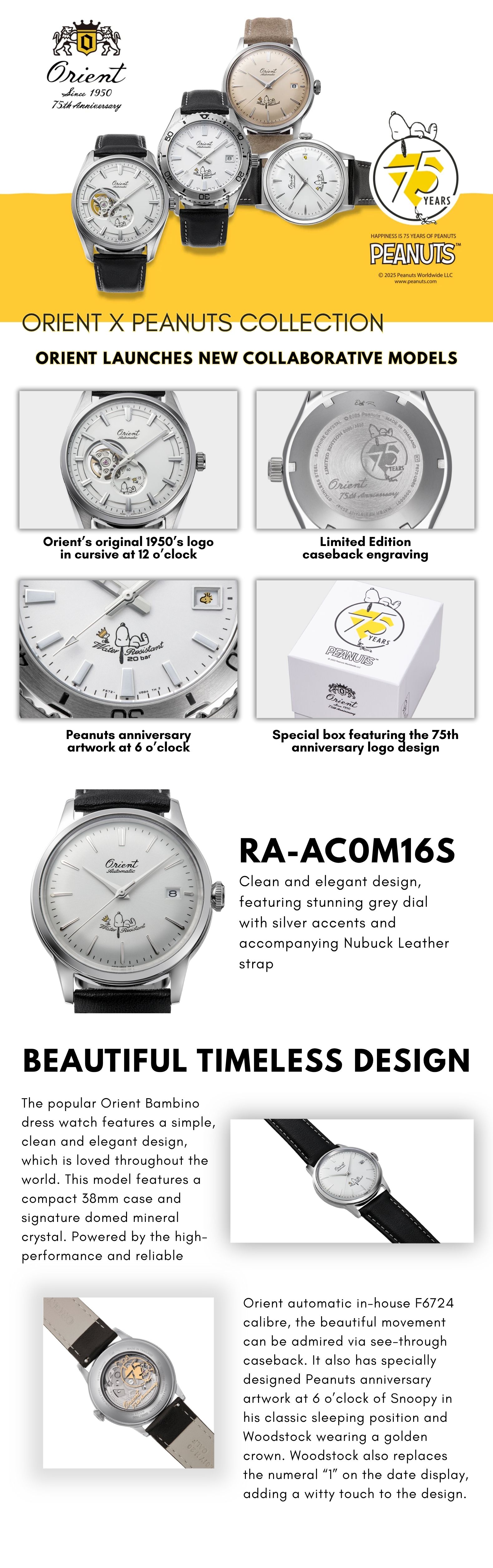 Membawa gaya elegan dengan sentuhan klasik. Koleksi Orient Classic RA-AC0M16S Bambino X Peanuts 75th Anniversary Limited Edition. Check out sebelum kehabisan!