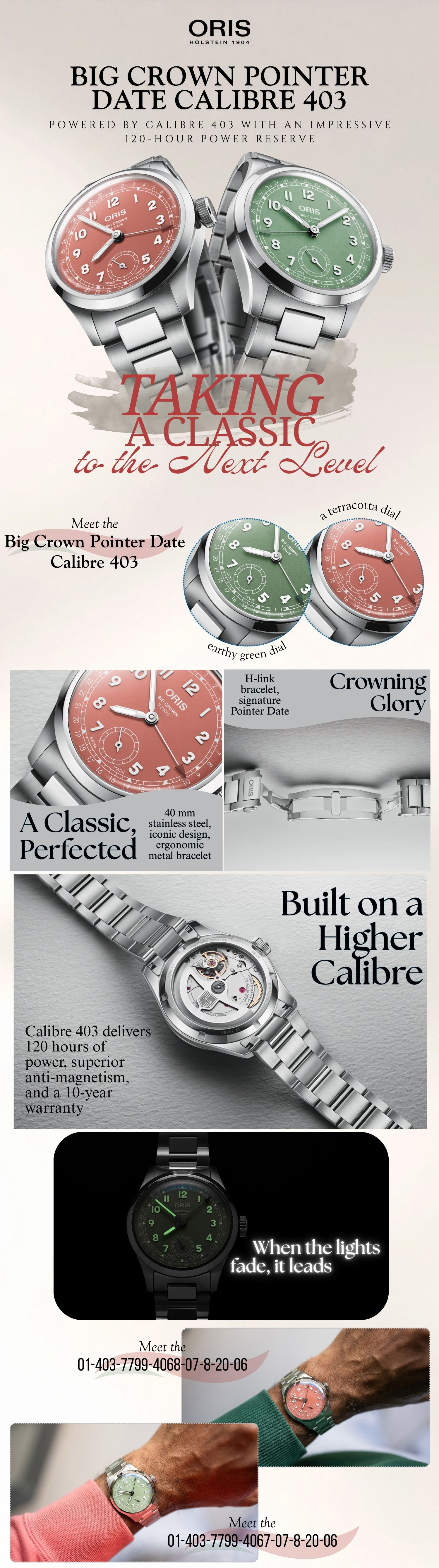 ✅ Ditenagai in-house Calibre 403 automatic dari seri Calibre 400 yang dirancang untuk performa tinggi dan daya tahan jangka panjang.