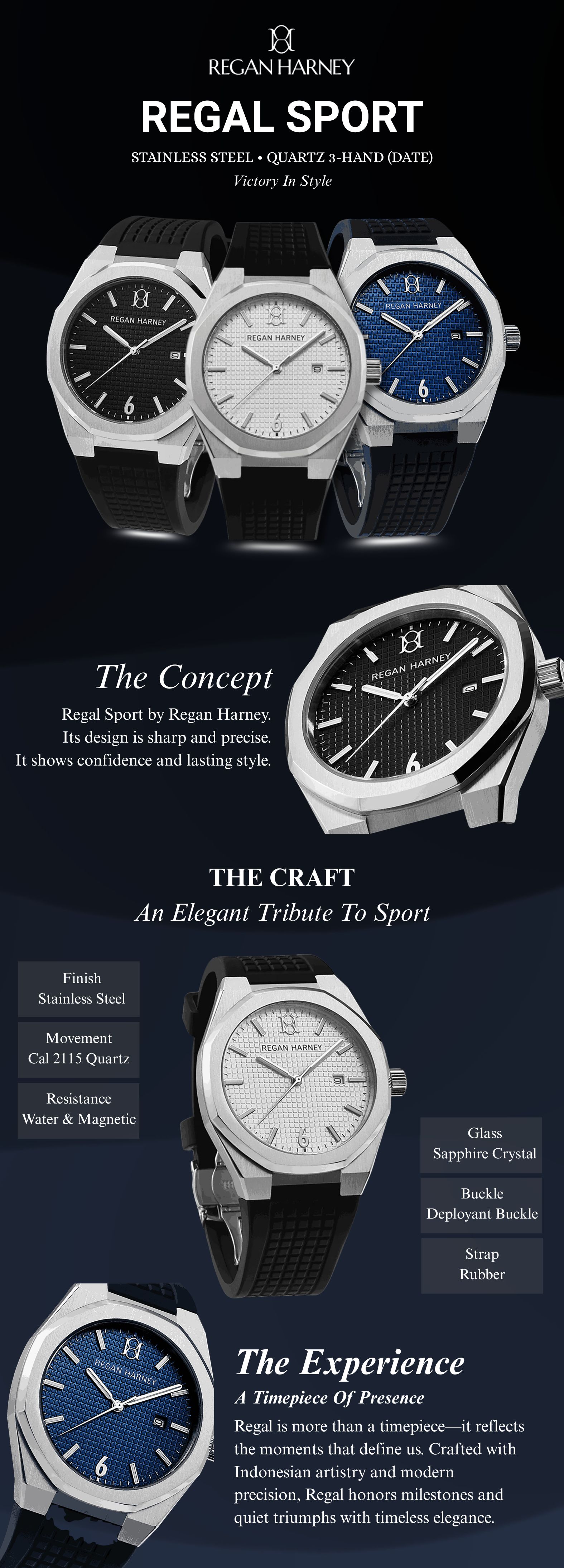 Tampil Lebih Percaya Diri dengan Regan Harney RH001 Regal Sport, Jam Tangan Stainless Steel Berdesain Tegas dengan Sapphire Crystal dan Presisi Quartz!