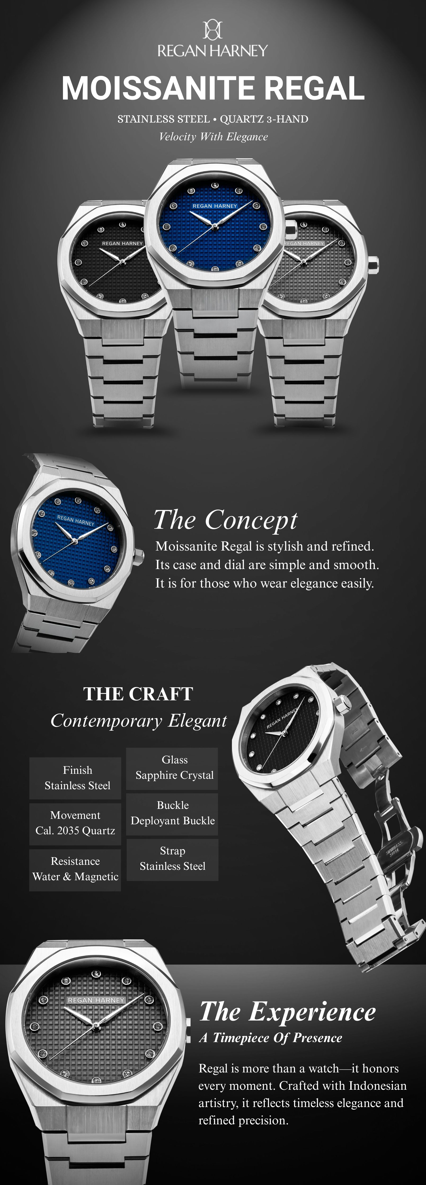 Segera miliki Regan Harney RH010 Moissanite Regal hanya di Jamtangan.com dan lengkapi koleksi jam tangan elegan Anda dengan jaminan keaslian serta pengalaman belanja terpercaya.