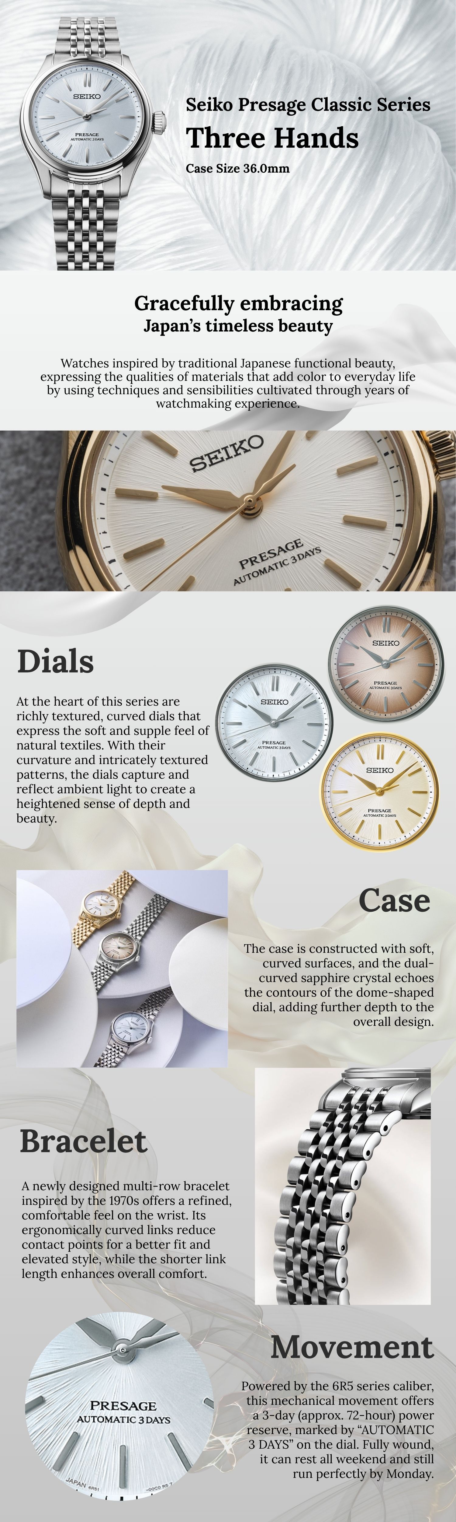 Seiko Presage Classic Edo Silk memadukan keanggunan tradisi Jepang dengan presisi modern. Setiap detailnya memancarkan pesona tenang dan mewah, menjadikannya simbol cita rasa tinggi bagi pecinta keindahan waktu.