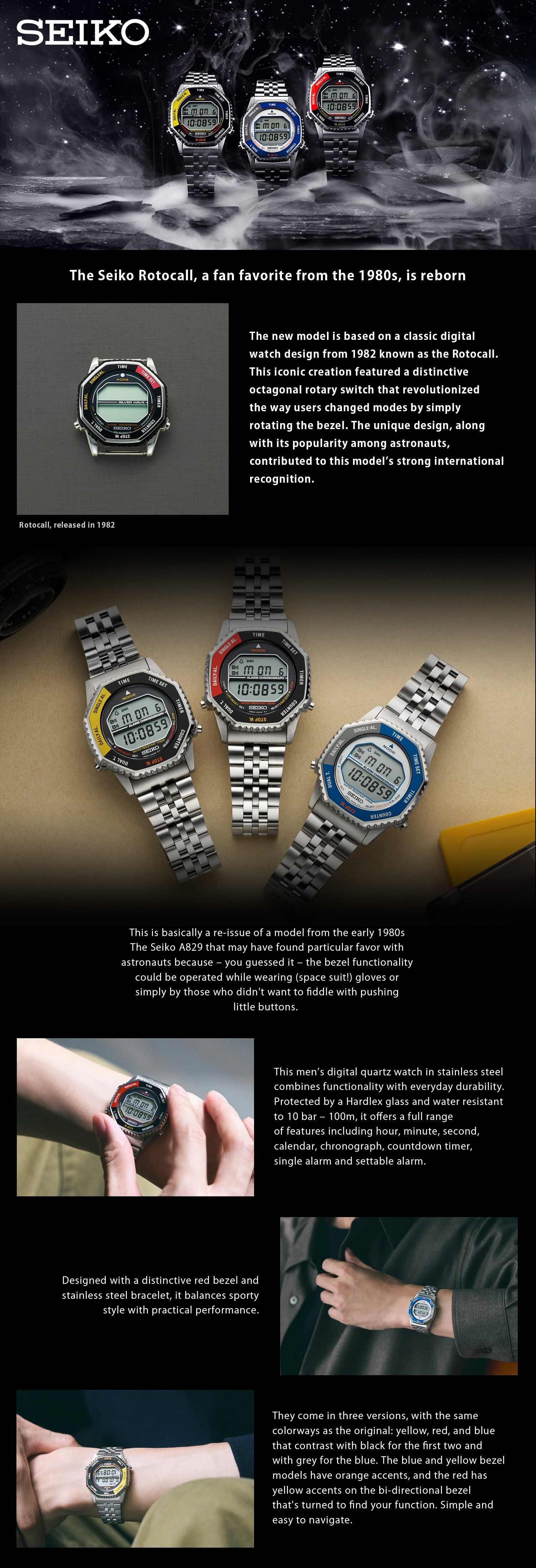 Seiko Rotocall Reissue kembali membawa pesona ikonik dari era digital pertama dengan sentuhan modern yang menawan. Perpaduan warisan desain, presisi tinggi, dan inovasi khas Seiko menjadikannya simbol gaya dan prestise.