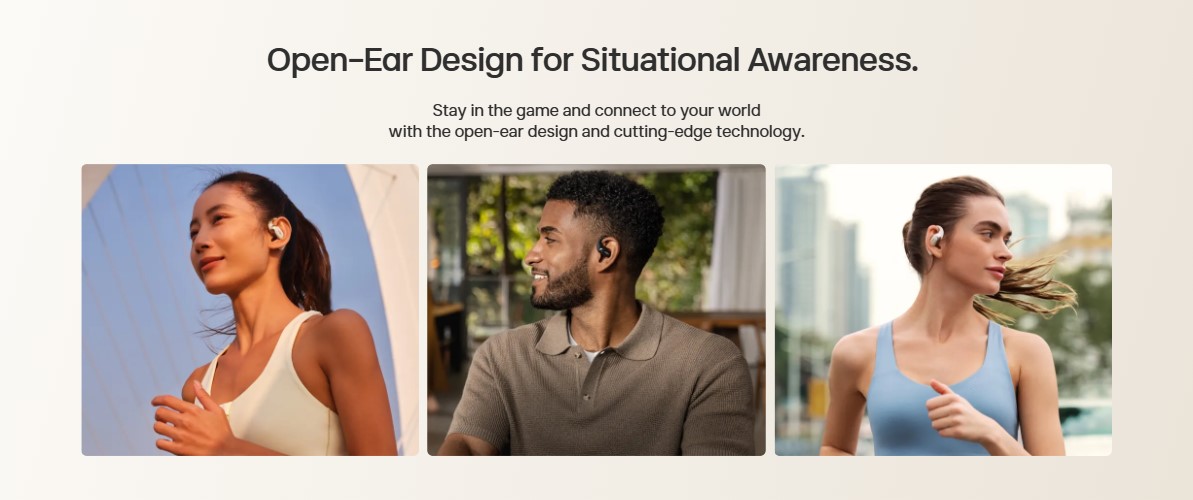 ✅ Desain open-ear memungkinkan mendengar suara sekitar tanpa mengganggu musik.