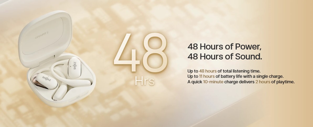 • Earbuds with Charging Case: Up to 48 hours of listening time