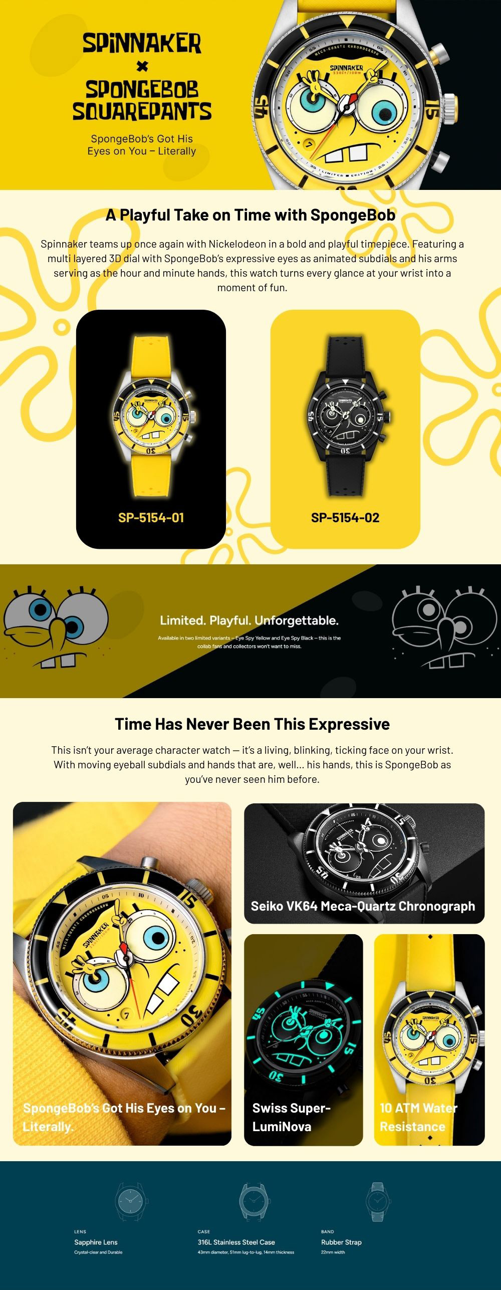 Jangan sampai kehabisan! Dapatkan Spinnaker Fleuss Chronograph SpongeBob SquarePants Eyedial Limited Edition Eye Spy Black sekarang juga di Jamtangan.com dan bawa pulang jam tangan penuh karakter yang siap bikin setiap detik lebih berwarna dan fun.