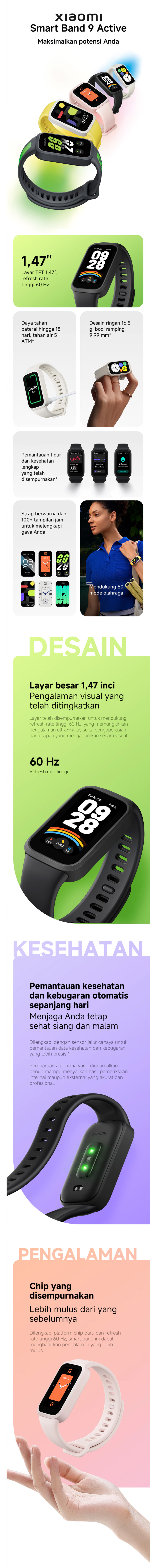 Lebih dari sekadar smartband biasa, berikut fitur-fitur unggulan Xiaomi Smart Band 9 Active yang siap menemani aktivitasmu: