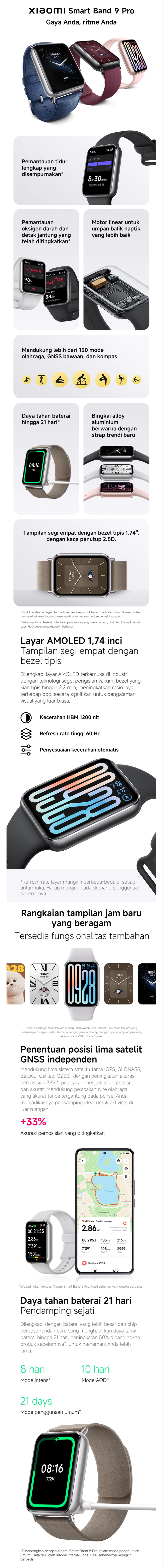 Xiaomi Smart Band 9 Pro bukan cuma pelacak aktivitas biasa, koleksi ini hadir dengan layar besar-dinamis, akurasi sensor yang ditingkatkan, dan fitur kebugaran komplit untuk siap mendukung gaya hidup aktif dan modern. Desain warna memukau juga siap mencuri perhatian.